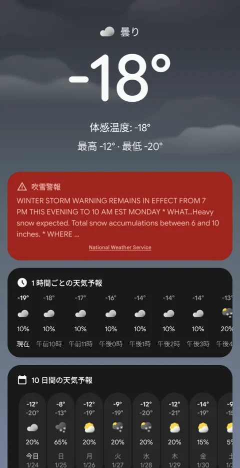 今日の朝で-18℃でした。週末は最大25cmくらいの雪になりそうです。